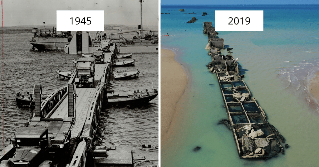 Though the Mulberry Harbors were meant to be temporary, some remnants still lie beneath the waters off the Normandy coast. Over the years, divers have uncovered forgotten pieces of the harbors—rusting breakwaters and half-buried piers that continue to tell the tale of this forgotten engineering marvel. Some parts of the harbors even washed up miles away along the French coast during storms in subsequent years, creating local legends and mysteries about what these strange structures were.